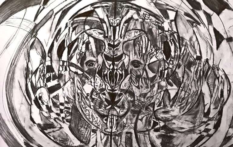 Charcoal has this cool texture and contrast you just don’t get with other mediums. It lets me play around with both loose shapes and sharp details, so the drawings feel emotional without being super precise. There’s a freedom and rawness to it that makes each piece come alive.
